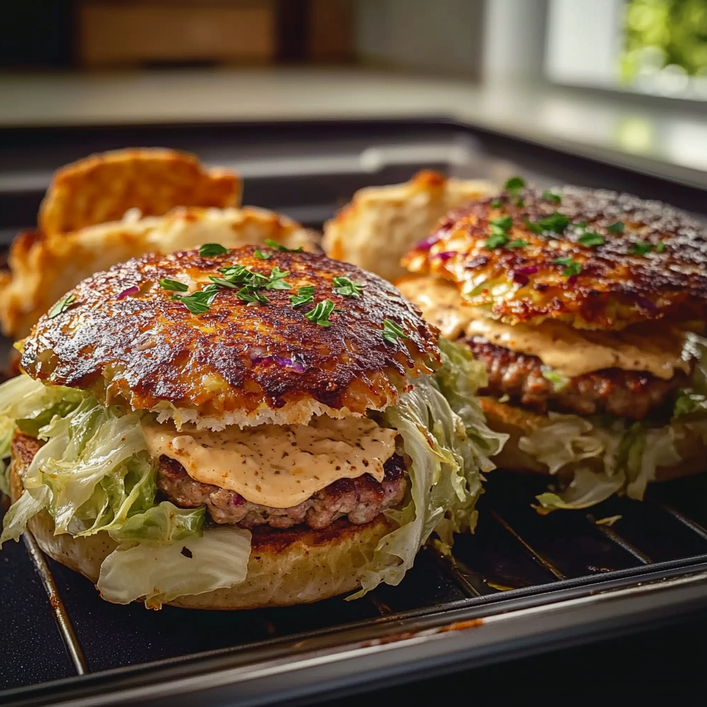 Cabbage burgers are flavorful wraps made from tender cabbage leaves filled with a variety of ingredients, such as ground meat, vegetables, rice, or grains. These hearty creations are typically baked in the oven until golden brown and deliciously cooked through. They offer a unique twist on traditional burgers by providing a low-carb alternative that's rich in nutrients and flavor. Perfectly seasoned fillings combined with crispy cabbage make these an appealing choice for anyone looking to enjoy a healthy meal option.