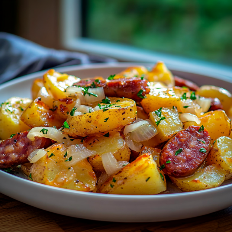 Fried Potatoes, Onions, and Smoked Polish Sausage is a comforting dish that brings together crispy potatoes, sweet caramelized onions, and savory sausage in one delicious recipe. Perfect for breakfast, lunch, or dinner, this hearty meal can easily be customized with your favorite spices or additional ingredients. The delightful aroma fills your kitchen while cooking, promising a satisfying experience that everyone will love. Enjoy this dish as a standalone meal or pair it with a fresh salad or crusty bread to soak up the flavors!