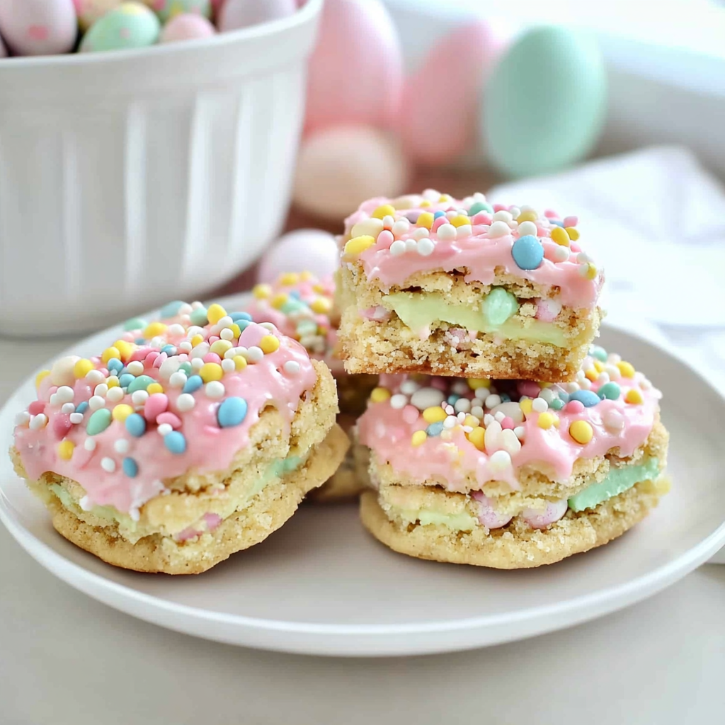 Easter cookie bars are festive treats designed specifically for celebrating Easter. They typically feature a soft cookie base decorated with colorful icing, sprinkles, or seasonal candies like jellybeans or chocolate eggs. These cookie bars offer a portable version of traditional cookies, allowing you to easily slice them into squares for sharing at gatherings or egg hunts.