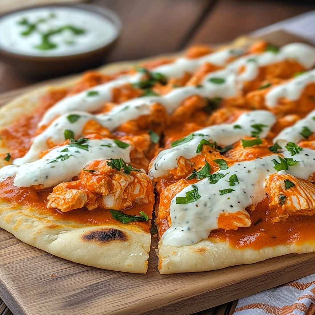 Buffalo Chicken Flatbread is a crowd-pleaser that melds spicy, tangy, and creamy flavors into one delicious dish. Perfect for game nights or cozy evenings at home, this easy-to-make flatbread is topped with juicy buffalo chicken, melty cheese, and a drizzle of ranch dressing. Whether you're entertaining guests or enjoying a night in, this recipe guarantees satisfaction with every bite.